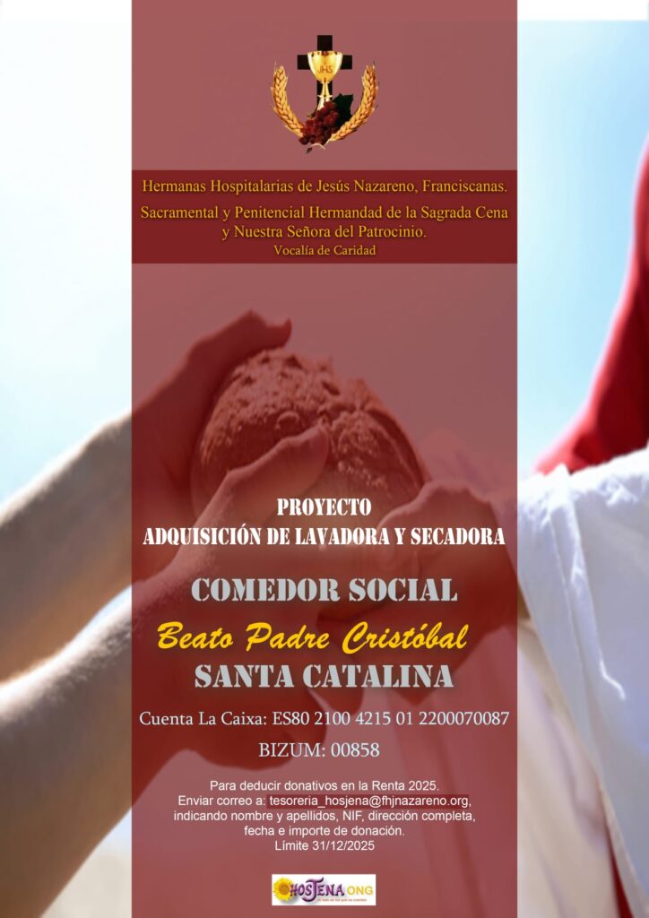 La Vocalía de Caridad de La Hermandad ha iniciado esta petición para la adquisición de una lavadora para el comedor Social BEATO PADRE CRISTOBAL DE SANTA CATALINA