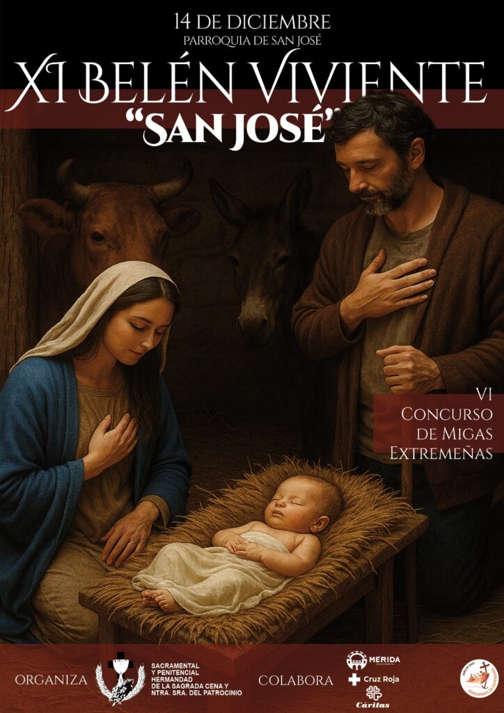 Con el XI Belén Viviente de Mérida nos adentramos en Belén desde una barriada de la capital de Extremadura (La Argentina), con el clamor de las populares zambombas y panderetas. El Belén es una “levantá a pulso” por Mérida, que llama a sumergirse en la magia de la Navidad, y que trasciende la narración del nacimiento de Jesús. Es la belleza del Evangelio desde una plazoleta emeritense. Pero todo desde la óptica de la Fe, pues va inseparable al sentimiento religioso. En el Belén se produce un maridaje sorprendente, alrededor del Portal, celebrando el Nacimiento del Hijo de Dios entre migas y villancicos.
